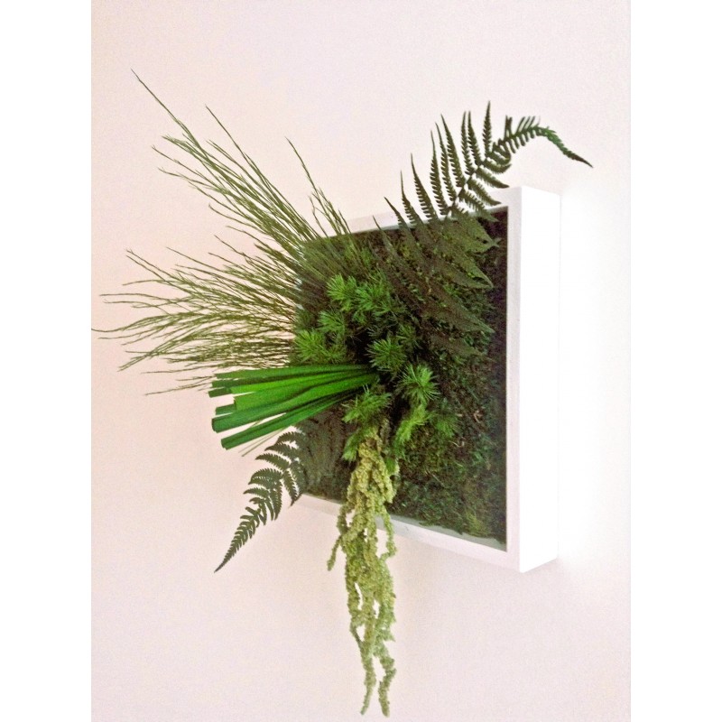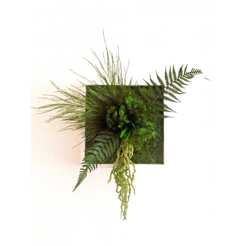 Tableau végétal stabilisé d’intérieur de format mini Niwa(du japonais qui signifie jardin) composé par nos paysagistes d’intérieur nécessitant aucun entretien.
