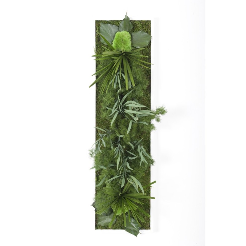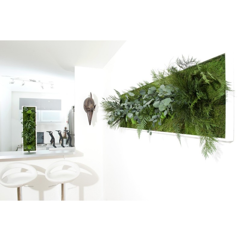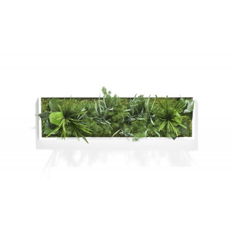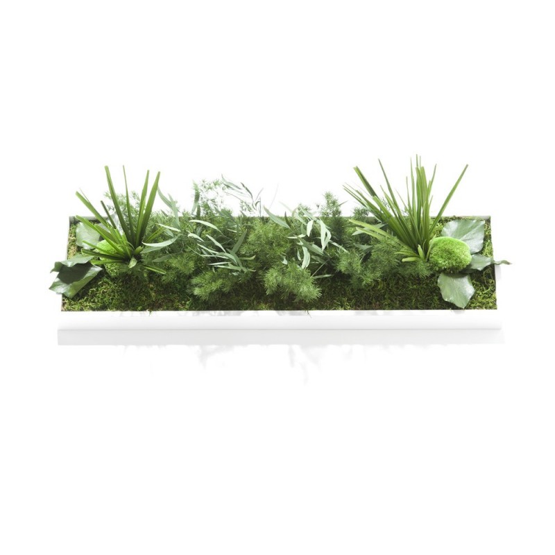 Tableau végétal stabilisé d’intérieur de petit format Hakoniwo (du japonais qui signifie jardin dans la boite) composé par nos paysagistes d’intérieur nécessitant aucun entretien.
