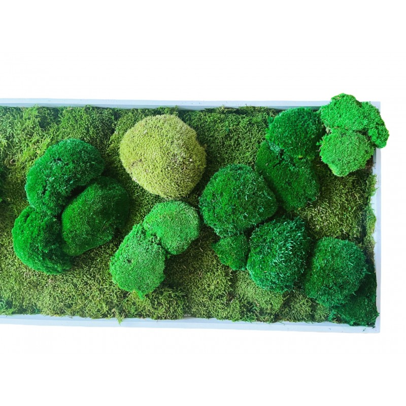 Tableau végétal stabilisé d’intérieur de format grand Mūsu XL qui signifie mousse en japonais composé par nos paysagistes d’intérieur en Ile de France dans notre atelier nécessitant aucun entretien.