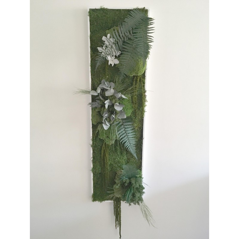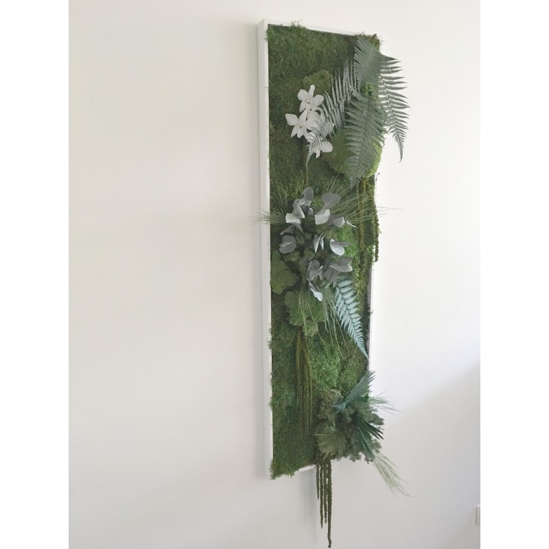 Tableau végétal stabilisé d’intérieur de grand format Ran (du japonais qui signifie orchidée) composé par nos paysagistes d’intérieur nécessitant aucun entretien.